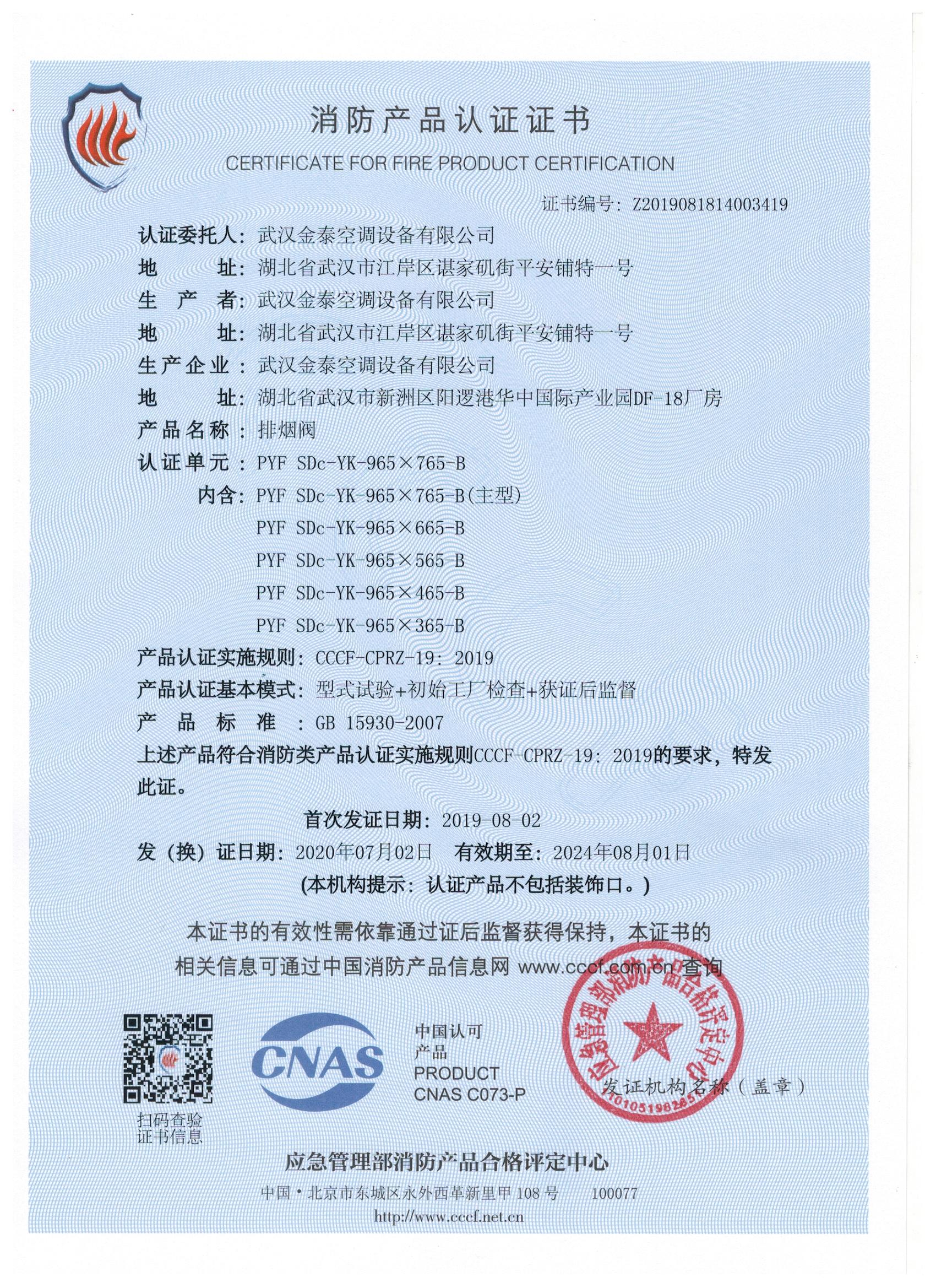 武漢金泰空調(diào)設(shè)備有限公司 是國內(nèi)長期專注于民用風(fēng)機、工業(yè)風(fēng)機領(lǐng)域的標(biāo)桿企業(yè):專業(yè)生產(chǎn)消防排煙風(fēng)機系列、排煙防火閥系列、一般通風(fēng)機系列(軸流式、離心式、屋頂式、壁式、隧道式、射流式)、風(fēng)口、風(fēng)管等消防及通風(fēng)設(shè)備。產(chǎn)品經(jīng)公安部消防產(chǎn)品合格評定中心評定符合消防產(chǎn)品CCC標(biāo)準(zhǔn);經(jīng)中國合格評定國家認(rèn)可委員會認(rèn)證的檢驗所檢驗合格;經(jīng)國家防火建材質(zhì)量監(jiān)督檢驗中心(四川中心)火燒實驗,耐火性能達(dá)標(biāo)。